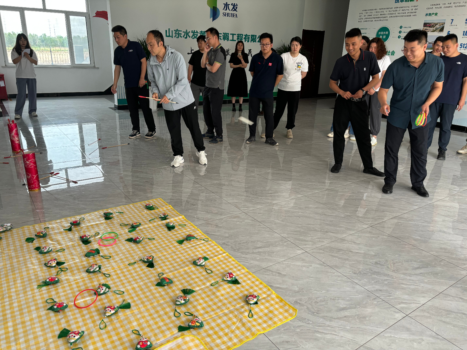 本次端午節(jié)活動(dòng)分為游戲互動(dòng)和包粽子環(huán)節(jié)。活動(dòng)現(xiàn)場(chǎng)歡聲笑語(yǔ)不絕于耳,投壺比賽激起了參與者們的熱情,每人八次投壺機(jī)會(huì),大家站在規(guī)定的投擲線后,專注投擲,場(chǎng)面熱鬧有趣。緊接著是套粽子比賽,大家摩拳擦掌,爭(zhēng)取每一次套中粽子香包的機(jī)會(huì),盡情釋放節(jié)日的喜悅與活力。