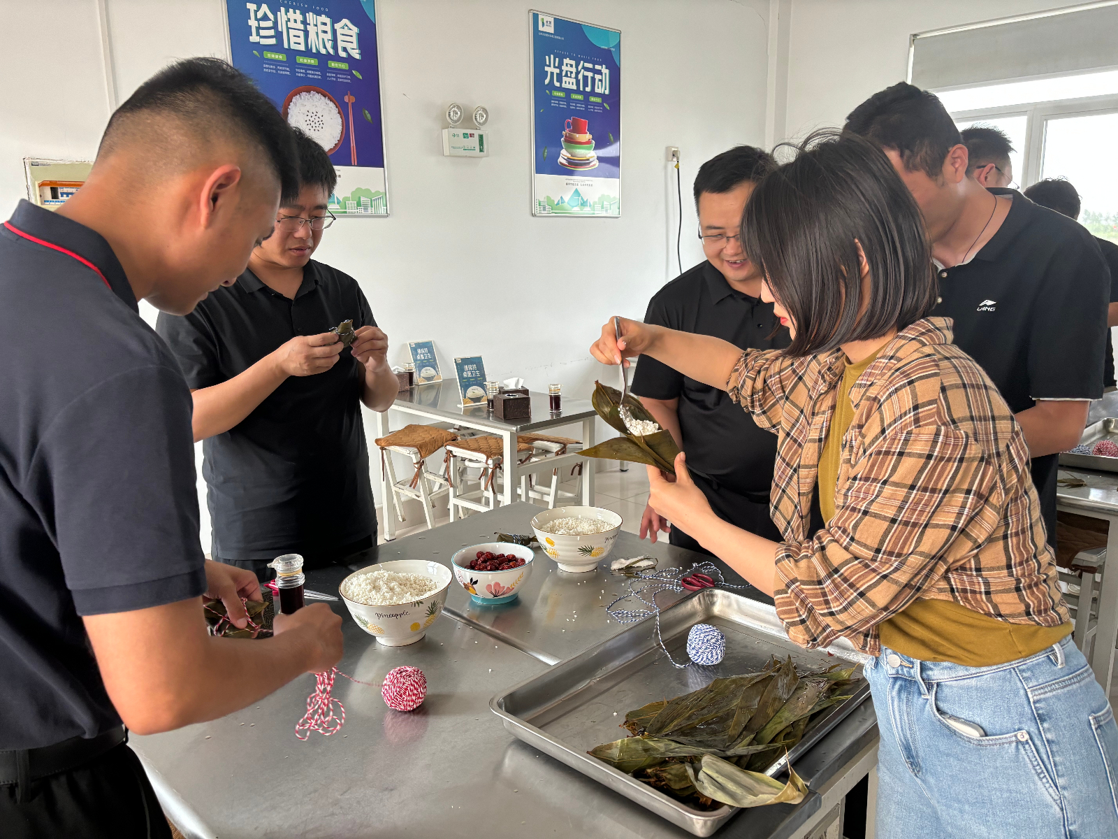 在一片祥和的節(jié)日氛圍中,大家圍攏在桌旁,邊學(xué)邊練,互相協(xié)作,折粽葉、填糯米、裹葉子、扎線.......一道道工序有條不紊,忙得不亦樂(lè)乎一張張翠綠的粽葉在手中翩翩起舞,一個(gè)個(gè)有模有樣的粽子迅速成型,大家手把手傳承著端午節(jié)的傳統(tǒng)文化,共同感受著中華傳統(tǒng)文化的魅力。