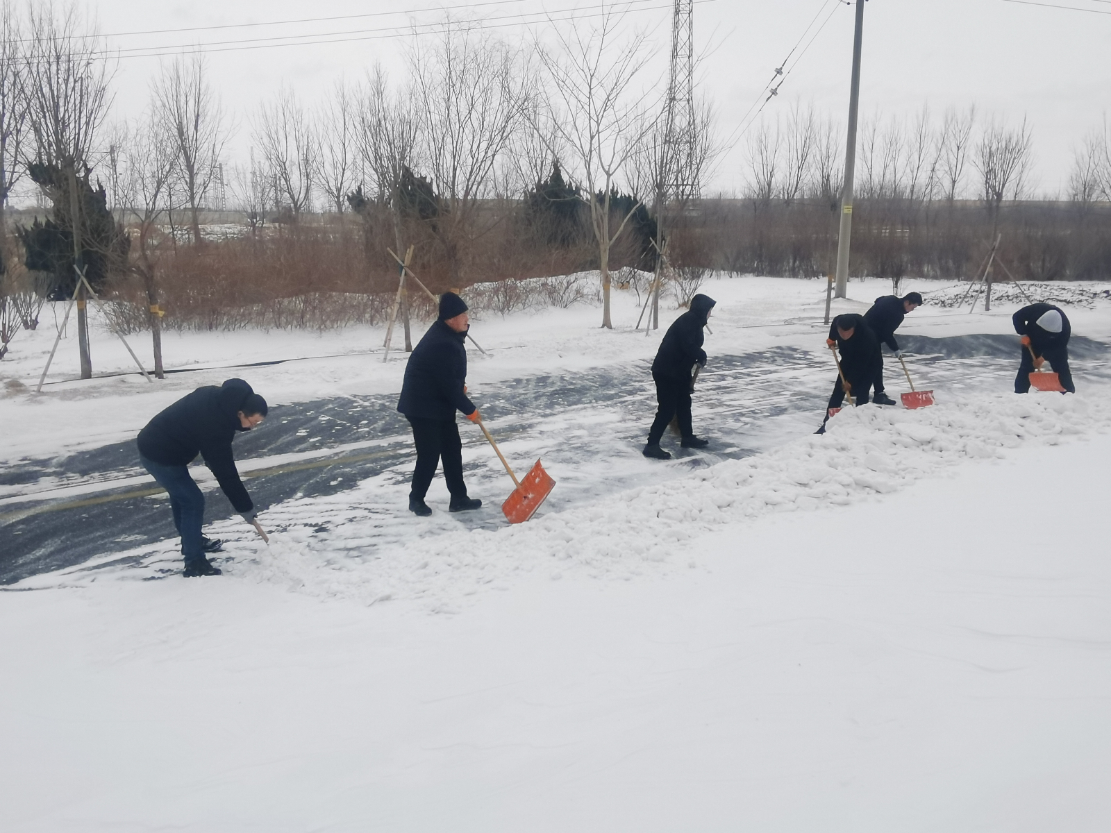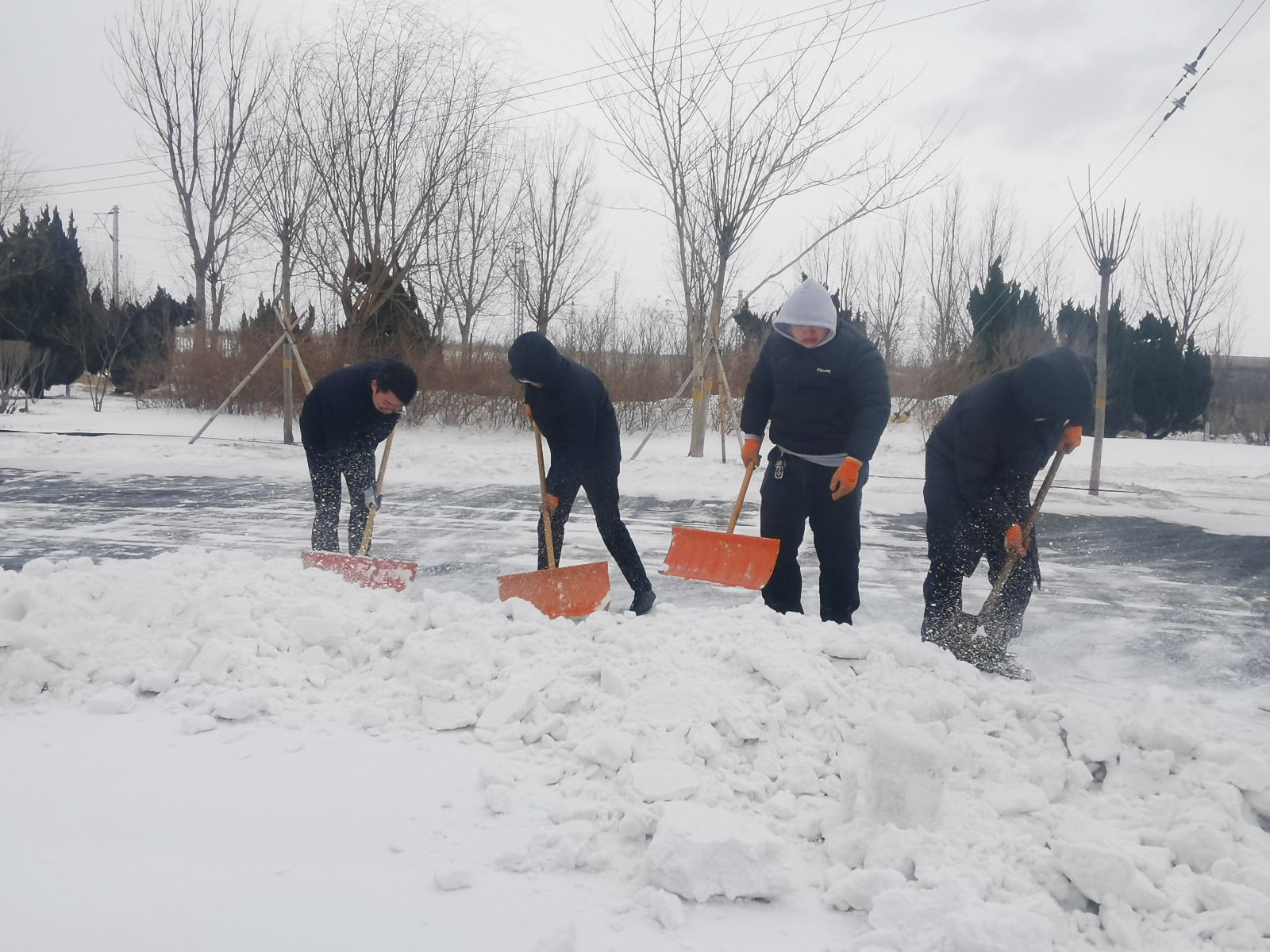 工作人員奮戰(zhàn)在除雪一線(xiàn),頂風(fēng)冒雪、不懼嚴(yán)寒,手持掃帚、鐵鍬等除雪工具,認(rèn)真細(xì)致地清掃道路積雪,確保出行安全。